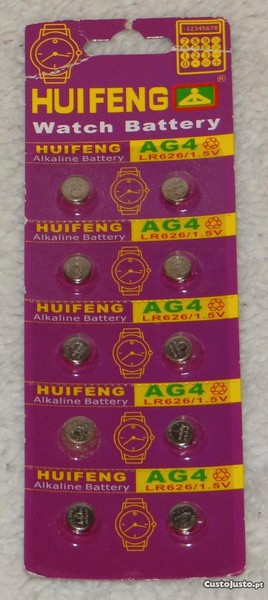 Pilha 1.5V LR626 AG4 para Relógios, Calculadoras e Outros (EUR 0,50 a Unidade).