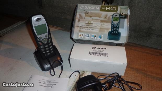 Telefone ou telemóvel SAGEM H10, com base/adaptador. O SEGEM H10 é novo ainda em caixa.Telemóvel/telefone sem fios).