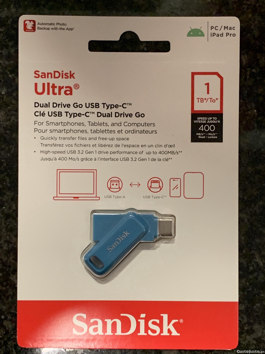 Preço: 82 €SanDisk Ultra Dual Drive Luxe (1TB) USB