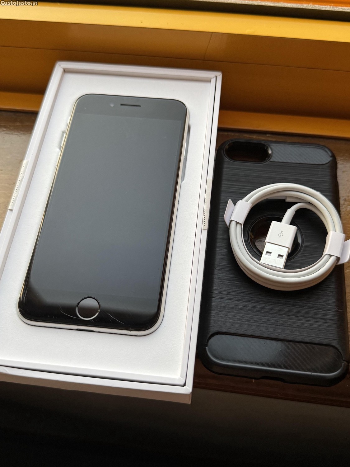 Telemóvel Smartphone Apple Iphone SE 2nd gen branco com capa e cabo Lightning.