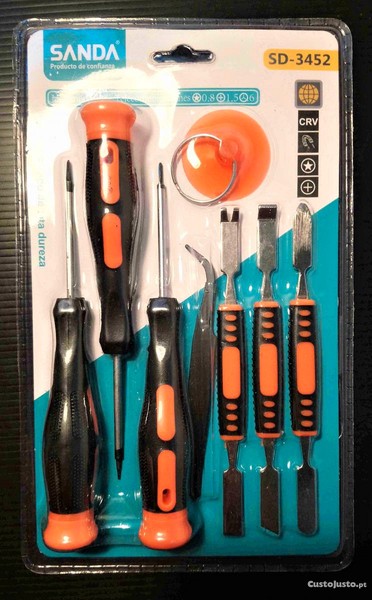Descrição: Conjunto de ferramentas de precisão para manutenção de telemóveis, e outros aparelhos.