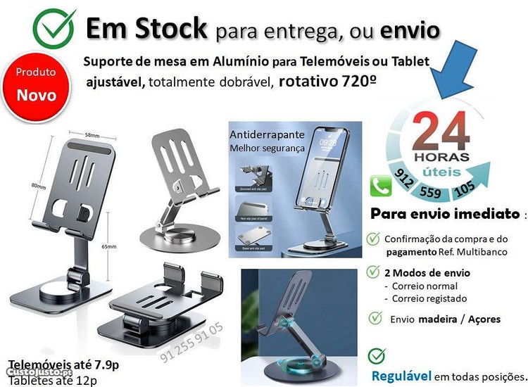 Preço: 8 €Suporte de mesa em Alumínio para Telemóveis ou Tabletes ,dobrável, rotativo 360º