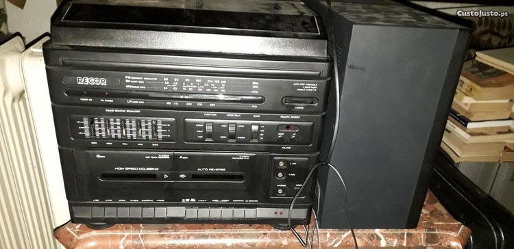 Aparelhagem Recor cassetes vinyl e radio antiga