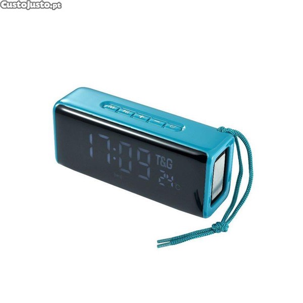 Cores Disponíveis: Azul Coluna Com Relógio Tem Rádio Aceita Jack 3.5 Aceita Pen Aceita Cartão Micro SD Bluetooth