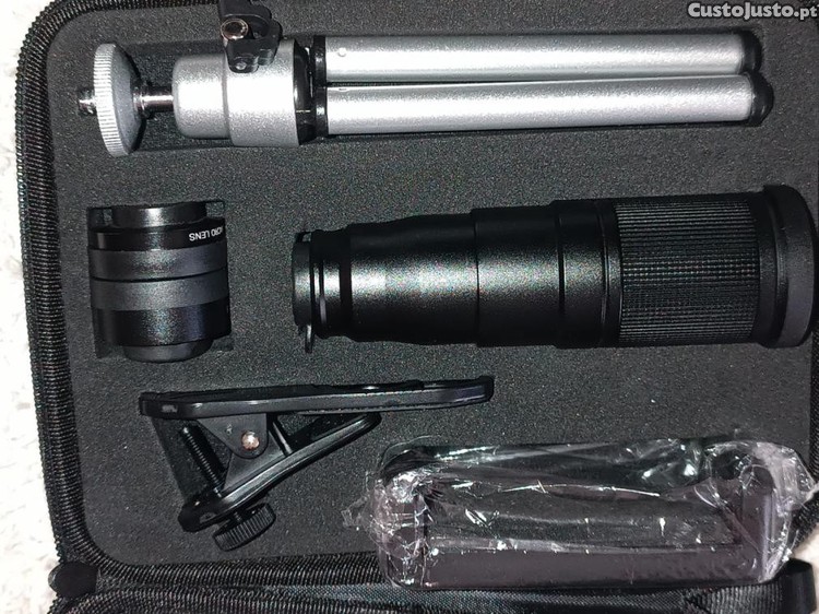 Preço: 40 €Kit de Lentes e mini tripé para smartphone