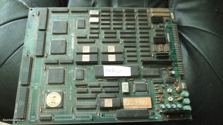 placas dos anos 80 e 90 jogos inesqueciveis que fizeram as delicias daqueles tempos . tudo original: bobble bobble 1980 clássico-captain commando 1991-fixeight 1992-juju densetu 1989 ( tokki )-thunder lightning 1990 classico-pang 1989 classico-kinghts of the round 1991 ( lancelot )-dyna blaster bomberman 1990 classico-carrier airwing 1991 aviao super sónico um classico-airwolf 1987 classico super helicopter um classico- street fighter 2 1987 clássico- pac man 1980 um verdadeiro clássico-super pang 1990-konami hiper athlet 1996 todas as modalidades olimpicas classico-puzzle bobble 2 x 1995- tumblepop 1991 clássico-game daitorid 1995 clássico- versus net soccer 1996 28 seleçoes incluinda a portuguesa clássico- one + two 1997 barko jogo quebra cabeças um verdadeiro clássico-tengai world 1996 dancing eyes 1996 - world cup 90 campeonato anos 90 italia- gals panic 1990 um verdadeiro clássico - thunder DRAGON 1991 super formula 1989 clássico- shanghai II 1989 ( sunsoft ) r. type 1988 um clássico -cabal 1989 clássico - tetris 1984-sky adventure 1989 um clássico -dragon world 1997 v0210-final fight - golden axe 1989 - judgment day 1991 - mortal kombat 1992 clássico -Sunset Riders 1990 faroeste um verdadeiro clássico-vendetta konami 1991-street fighter 1990-super pang 3 - super volle y ball 1989-star forçe 1984 um classico-caverna ninja 1991 joe and mac -the king of fighters 1996- fighters impact 1996- puzzle & action 1995-