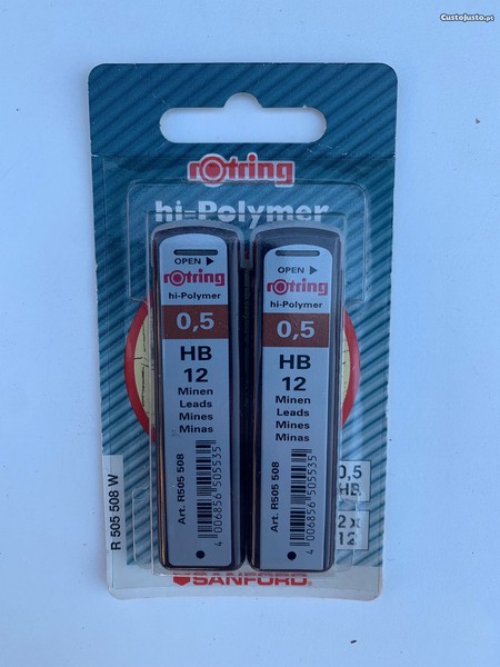 Minas de dureza HB, de alto polímero para lapiseiras finas. Extra forte e flexível e fácil de apagar