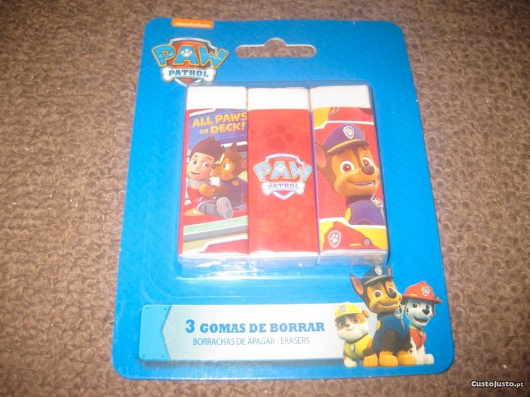 Preço: 3 €Set com 3 Borrachas Escolares "Paw Patrol" Novo!