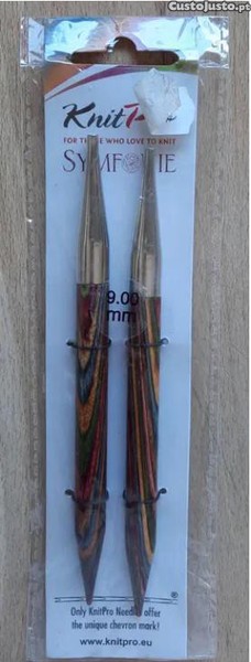 Agulhas de madeira intercambiáveis da marca KnitPro Symfonie, tamanho 9 mm. Entrego em mão no Porto / Maia ou portes a cargo do comprador.