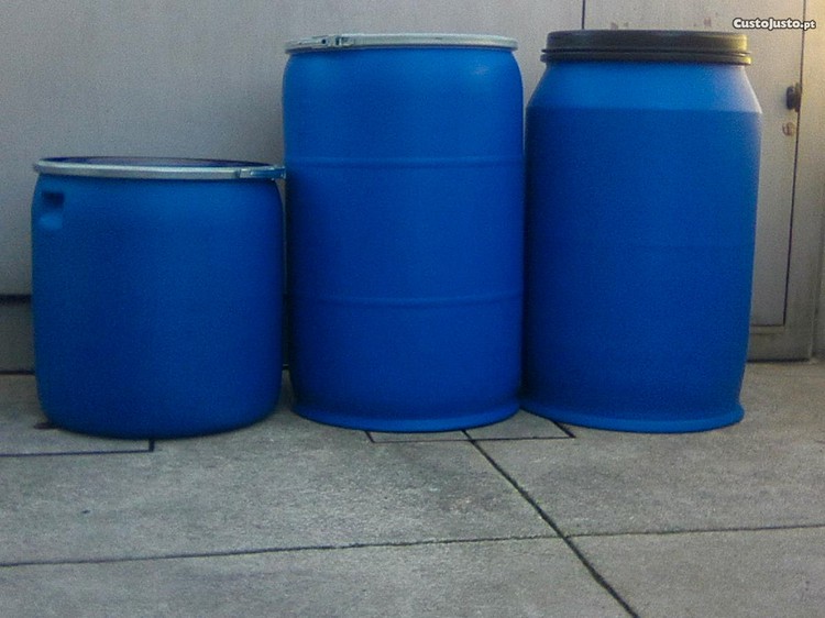 Tenho barricas com tampa e arco metálico de 200 litros, limpas como novas por 35.00 EUR tb tenho outros tamanho