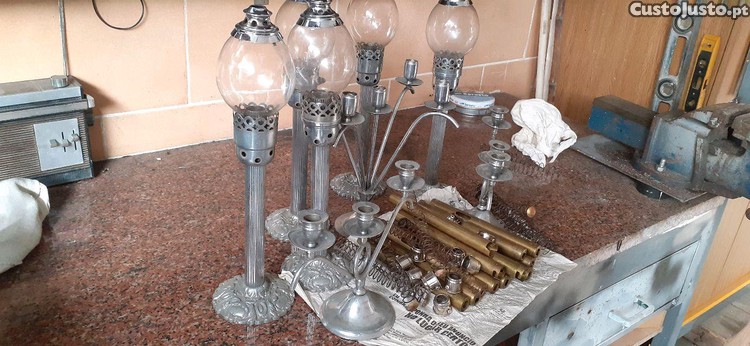 5 castiçais completos , 3 castiçais diferentes, e todos os acessórios, usados em.bom estado tudo por 120. podem ser vendidos separados