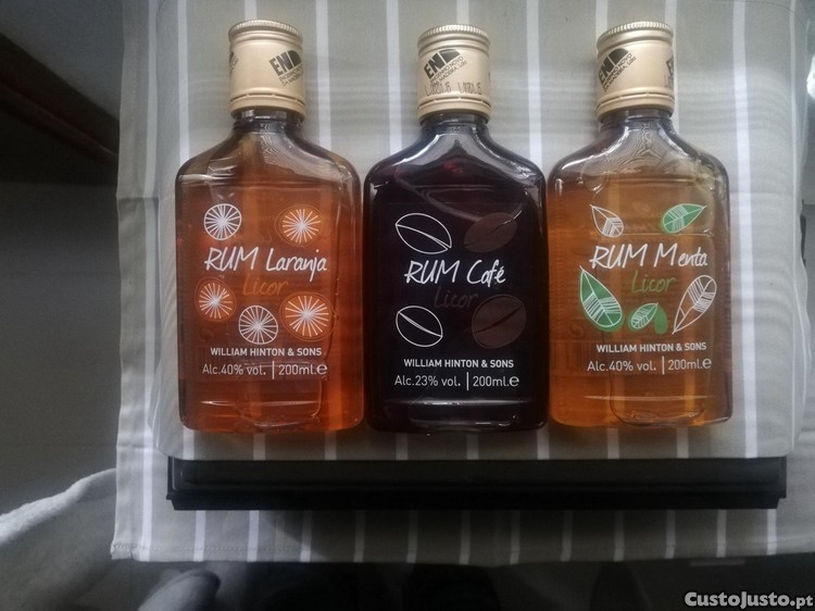 3 garrafas rum menta laranja café. Entrego em mão no Porto ou a ctt a cargo do comprador. Pagamento mbway ou transferência
