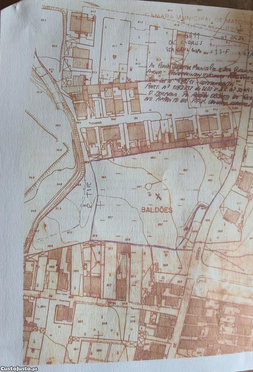 Terreno com 7000m2na entre rua de Cidres e rua Tir Santa Cruz do Bispo Matosinhos, classificado como predominante habitacional perto do Centro Comercial Mar Shoping, Leroy Merlin, Aeroporto entre outros.