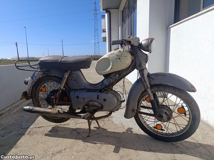 Motor roda bem, não está preso nem faz barulho ao rodar, o ideal é uma revisão, carburador, pneus, para a colocar novamente a andar. COM Documentos camararios e declaração de venda assinada tudo pronto para passagem de nome. O farolim de trás da Hella ainda original, em perfeito estado, difícil de encontrar.