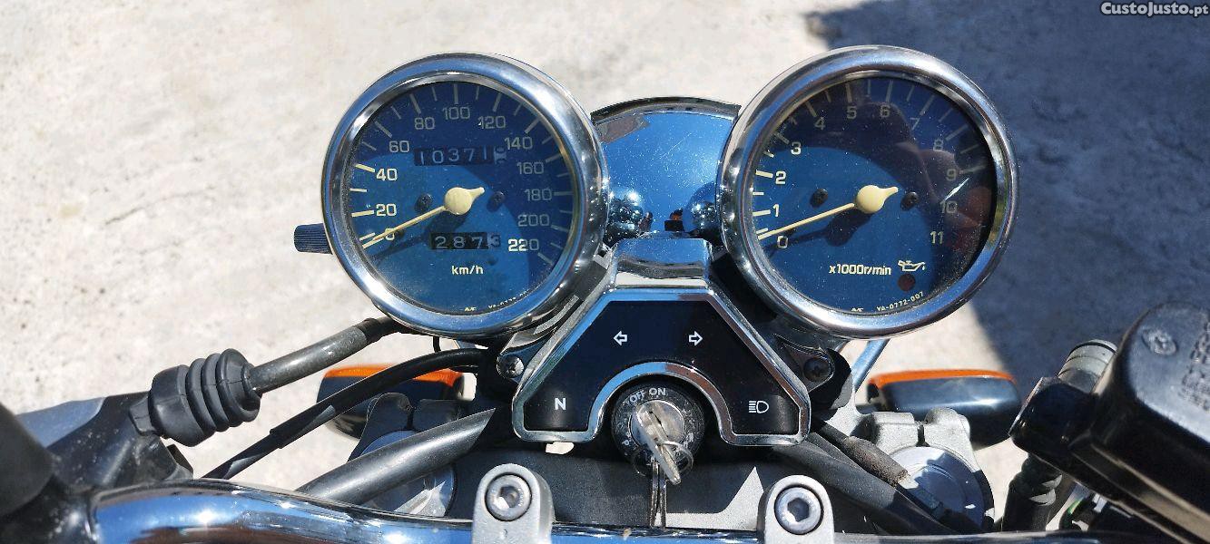 Na última revisão levou óleo e filtro, pneu traseiro novo, pastilhas de travão da frente, foi feita a troca dos vedantes e óleo da suspensão da frente e tbm levou vedantes dos carburadores e foi feita a limpeza e afinação dos mesmos.