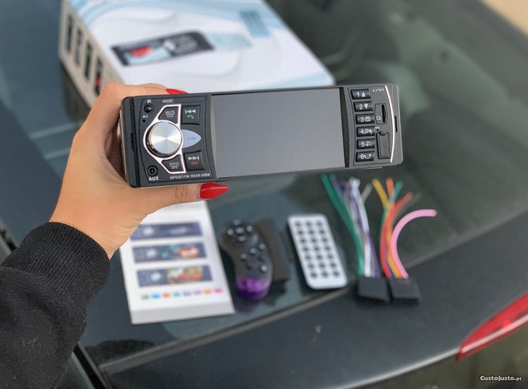 Como pode comprovar na hora da compra o mesmo ainda possui película no ecrã e tem também o comando de Volante, comando controlo Remoto, fichas universais ISO, e manual de instruções SELADOS.