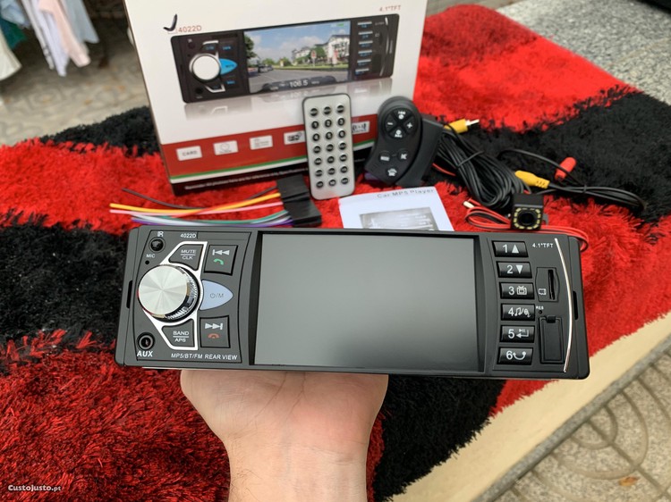 Como pode comprovar na hora da compra o mesmo ainda possui película no ecrã e tem também o comando de Volante, comando controlo Remoto, fichas universais ISO, e manual de instruções SELADOS.