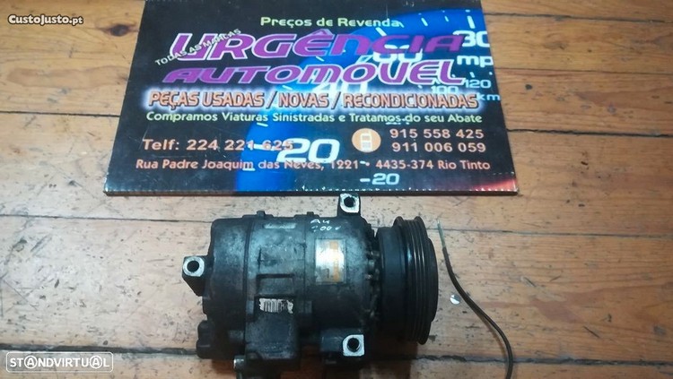 audi a4 b5 (95-01) - compressor bomba de ar condicionado ac climatronic - 8d0260808 / 447220835 valor unitário. temos um vasto stock de peças novas e usadas para todas as marcas automoveis. enviamos para continente e ilhas. envios após pagamento; acrescem portes de envio. todos os anúncios são publicados por rotina informática, estando a disponibilidade sempre sujeita a confirmação. poderá adquirir o material no nosso armazém em gondomar - porto ou solicitar a entrega na morada que pretender. será importante pedir a confirmaçao/separação da peça que pretende antes de se deslocar ao armazém, de modo a evitar o tempo de espera. obrigado, urgência automóvel