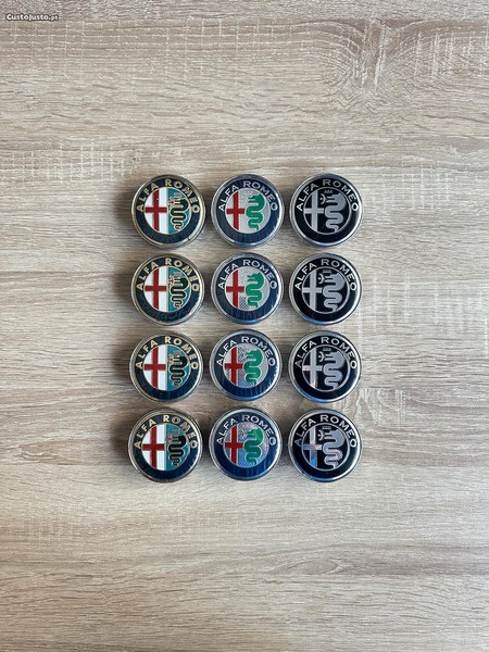 Conjunto de 4 tampas centros de jantes Alfa Romeo disponíveis nas medidas de 50mm, 56mm e 60mm novos embalados no plástico.