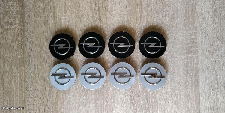 Conjunto de 4 tampas centros de jantes Opel disponiveis nas medidas de 56mm, 60mm, 64mm, 65mm e 68mm novos embalados no plástico.