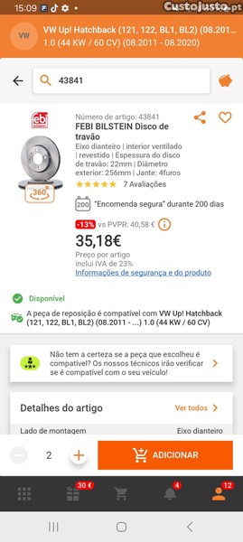 Preço: 45 €Discos VW up! 1.0 de 2011 a 2020 Dianteiros FEBI