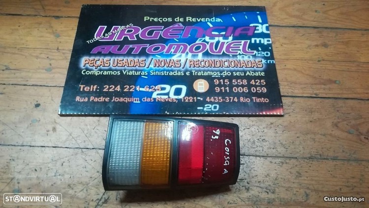 farolim/ stop farol óptica / ótica trás direito / esquerdo - opel corsa a (unidade) código: 0005137 farolim / farol óptica trás direito / esquerdo - opel corsa a valor por unidade. temos um vasto stock de peças usadas e novas para todas as marcas automóveis. poderá adquirir o material no nosso armazém em gondomar - porto ou solicitar a entrega na morada que pretender. as peças comercializadas pela nossa empresa geralmente têm sinais de desgaste, daí que as peças usadas sejam mais baratas do que as novas. peças usadas de colisão podem apresentar pequenos toques ou arranhões na tinta. será importante solicitar a separação da peça que pretende antes de se deslocar ao armazém, para evitar o tempo de espera. envios após pagamento; acrescem portes de envio. este anúncio é publicado através de uma rotina informática e é informativo, não vinculativo. fotografia ilustrativa. todo o material sujeito a confirmação. radiador agua, refrigerador óleo, termostato, ventoinha sistema arrefecimento, barra suporte reforço, capot , cava roda, espelho retrovisor, grelha radiador, guarda-lama, para-choques, pisca mudança direção, puxador porta interior e exterior, porta bagagens tampa mala, portas, polie cambota, tensor correia, fecho central, levanta vidros, manetes limpa vidros e luzes, caixa direção, coluna direção, junção axial, kit embraiagem prensa prato rolamento, volante motor bimassa, buzina, faróis nevoeiro, farolins traseiros, óptica otica, farol regulador, piscas, motor arranque, relé piscas, unidade controle, intercooler, vácuo, tubos refrigeração, arvore cames, bomba óleo, cárter, regulador pressão, roda dentada, vareta óleo, bomba combustível, sensores, coletor escape, panela frente tras, turbo, bobine, distribuidor, cabos velas, bomba água, motor limpa pára-brisas vidros, amortecedor, suspensão, molas, barra direção, bra...