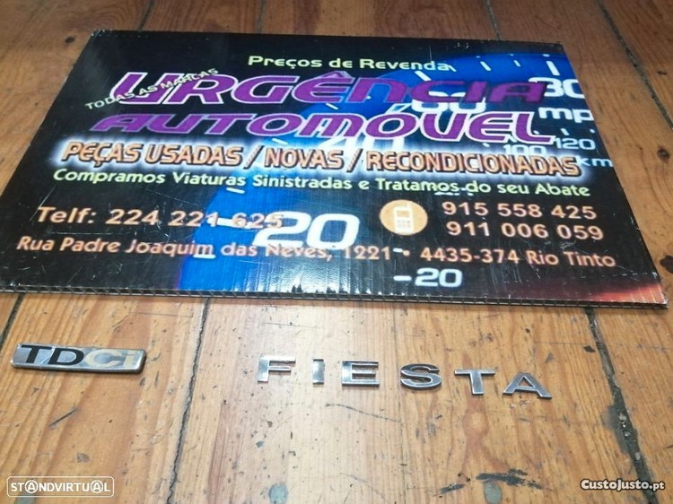 ford fiesta (2002-2007) - símbolo / legenda "fiesta" "tdci" 20eur valor unitário. temos um vasto stock de peças novas e usadas para todas as marcas automoveis. enviamos para continente e ilhas. envios após pagamento; acrescem portes de envio. todos os anúncios são publicados por rotina informática, estando a disponibilidade sempre sujeita a confirmação. poderá adquirir o material no nosso armazém em gondomar - porto ou solicitar a entrega na morada que pretender. será importante pedir a confirmaçao/separação da peça que pretende antes de se deslocar ao armazém, de modo a evitar o tempo de espera. obrigado, urgência automóvel
