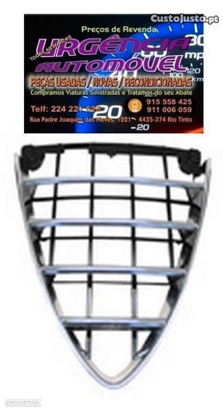 grelha central frontal nova alfa romeo 159 valor unitário. peças auto novas e usadas baratas desde 10eur temos um vasto stock de peças usadas e novas para todas as marcas automóveis. poderá adquirir o material no nosso armazém em gondomar - porto ou solicitar a entrega na morada que pretender. as peças comercializadas pela nossa empresa geralmente têm sinais de desgaste, daí que as peças usadas sejam mais baratas do que as novas. peças usadas de colisão podem apresentar pequenos toques ou arranhões na tinta. será importante solicitar a separação da peça que pretende antes de se deslocar ao armazém, para evitar o tempo de espera. todo o material esta sujeito a confirmação. envios após pagamento; acrescem portes de envio. este anúncio é publicado através de uma rotina informática e é informativo, não vinculativo. fotografia ilustrativa. radiador agua, refrigerador óleo, termostato, ventoinha sistema arrefecimento, barra suporte reforço, capot , cava roda, espelho retrovisor, grelha radiador, guarda-lama, para-choques, pisca mudança direção, puxador porta interior e exterior, porta bagagens tampa mala, portas, polie cambota, tensor correia, fecho central, levanta vidros, manetes limpa vidros e luzes, caixa direção, coluna direção, junção axial, kit embraiagem prensa prato rolamento, volante motor bimassa, buzina, faróis nevoeiro, farolins traseiros, óptica otica, farol regulador, piscas, motor arranque, relé piscas, unidade controle, intercooler, vácuo, tubos refrigeração, arvore cames, bomba óleo, cárter, regulador pressão, roda dentada, vareta óleo, bomba combustível, sensores, coletor escape, panela frente tras, turbo, bobine, distribuidor, cabos velas, bomba água, motor limpa pára-brisas vidros, amortecedor, suspensão, molas, barra direção, braços, cubos, discos travão, pinça travão, sensor abs esp, servo freio, tambor, bomba travões, jantes espe...
