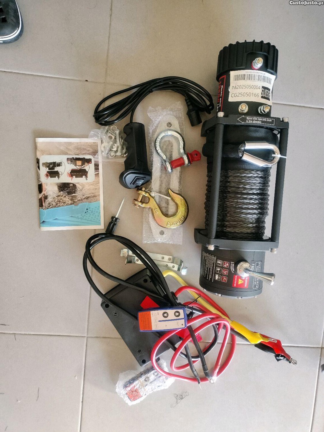 Guincho elétrico para viatura todo terreno ou outros. De 12 volts e capacidade superior a 6 toneladas. Com comando por fio e 2 comandos sem fios. Corda de 27 metros
