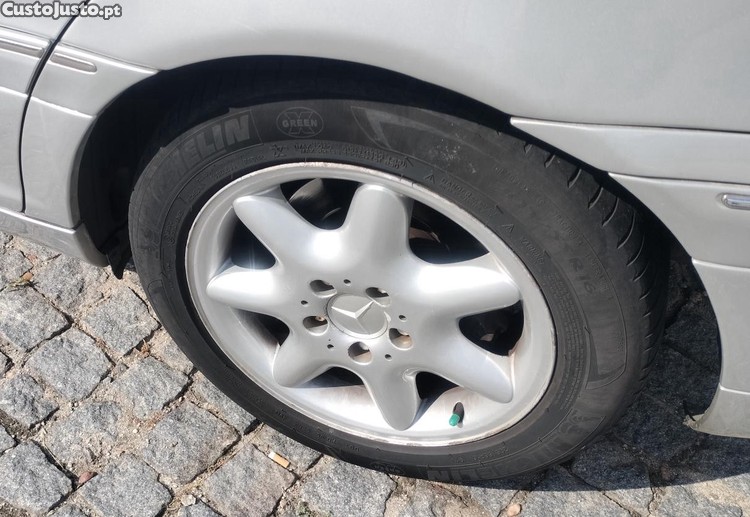 4 Jantes de 16" de Mercedes Classe C (W203), versão Elegance, com pneus Michelin 205/55/R16, ainda com piso para rolar.
