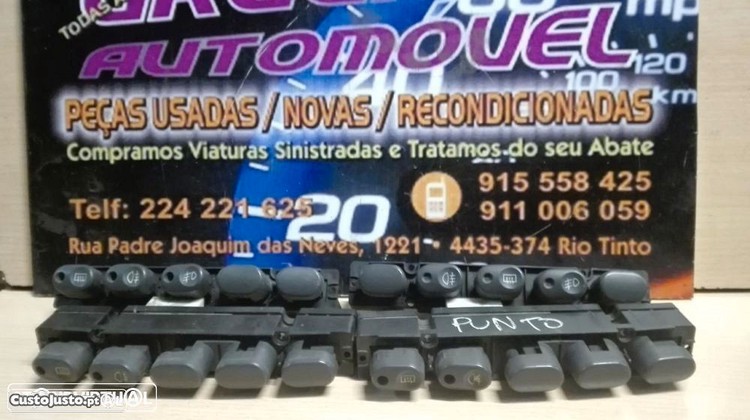 régua / barra de botões botão - fiat punto 1 (94-99) valor unitário. temos um vasto stock de peças novas e usadas para todas as marcas automoveis. enviamos para continente e ilhas. envios após pagamento; acrescem portes de envio. todos os anúncios são publicados por rotina informática, estando a disponibilidade sempre sujeita a confirmação. poderá adquirir o material no nosso armazém em gondomar - porto ou solicitar a entrega na morada que pretender. será importante pedir a confirmaçao/separação da peça que pretende antes de se deslocar ao armazém, de modo a evitar o tempo de espera. obrigado, urgência automóvel