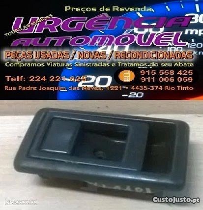 toyota corolla xl - puxador punho porta interior / exterior valor unitário. temos um vasto stock de peças novas e usadas para todas as marcas automoveis. enviamos para continente e ilhas. envios após pagamento; acrescem portes de envio. todos os anúncios são publicados por rotina informática, estando a disponibilidade sempre sujeita a confirmação. poderá adquirir o material no nosso armazém em gondomar - porto ou solicitar a entrega na morada que pretender. será importante pedir a confirmaçao/separação da peça que pretende antes de se deslocar ao armazém, de modo a evitar o tempo de espera. obrigado, urgência automóvel
