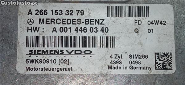 Número da peça 76711. Unidade de controlo Mercedes-Benz Clase A (BM 169)(06.2004->) 1.5 A 150 (169.031) [1,5 Ltr. - 70 kW CAT]. Código do motor: M 266.920. Ano: 2004. Cor: AZUL. Referência Original: A2661533279. Referência Equivalente: A0014460340. Observações: . CV23-518.66