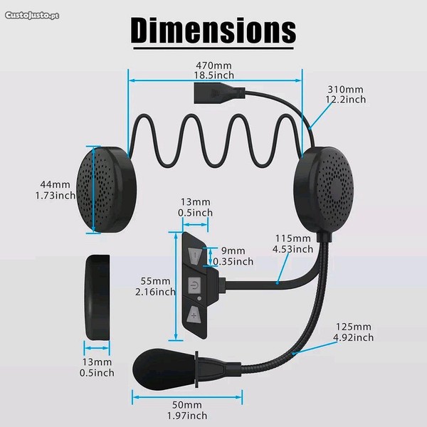 Preço: 35 €Bluetooth capacetes mãos livres e SIRI