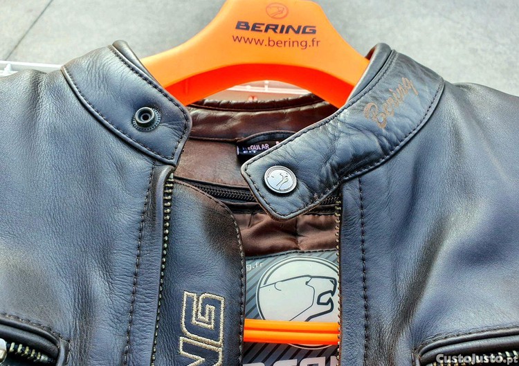 Blusão de moto Bering modelo Apollo, estado irrepreensível. Usado unicamente em 2 vezes numa saída esporádica ao fim-de-semana. Possui forro destacável, impossibilitando, qualquer entrada do frio. Blusão em pele castanho, tamanho M, muito confortável,sem qualquer dano, nomeadamente na pele, fechos e respetivo forro. Tem proteçoes nos ombros e cotovelos. Preço de aquisição: 365,00. Blusão para entendidos, que previligiam a qualidade e o conforto.