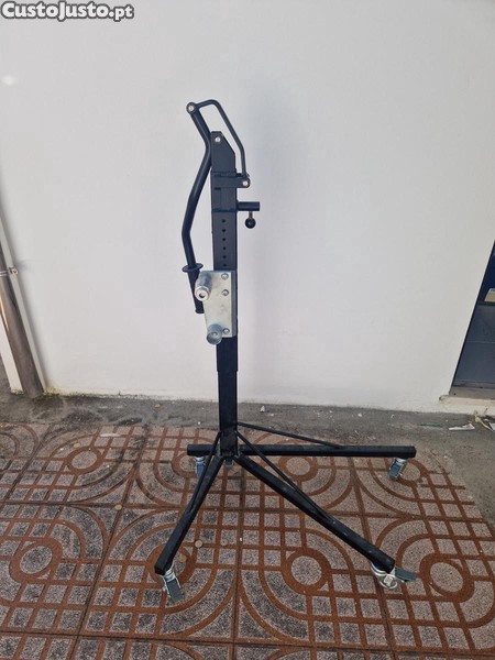 Permite elevar a mota deixando as duas rodas no ar, excelente para fazer revisões, trocar pneus..