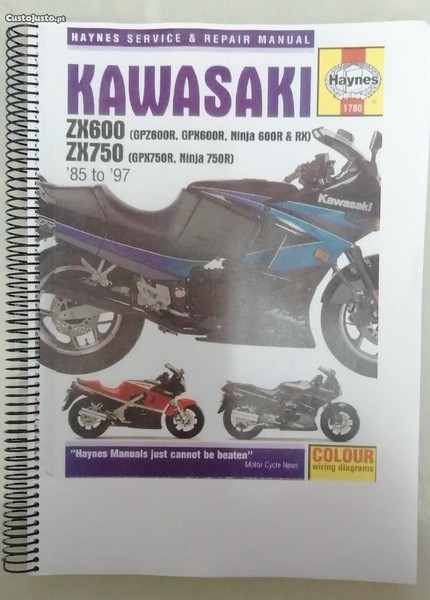 Vendo manual de manutenção para Kawasaki gpx 600R, gpz 600R, ZX 600, ZX 750, com toda a informação de mecânica, parte técnica e eléctrica com esquemas completos. Composto por 265 páginas, já vai encadernado com argolas.
