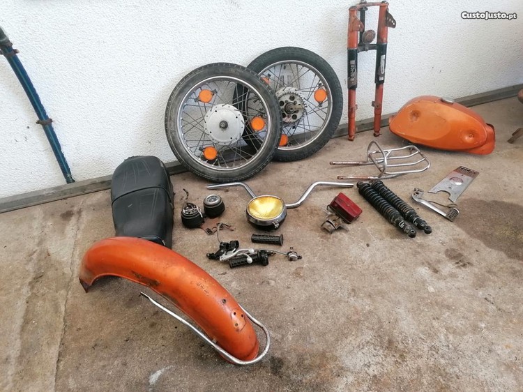Peças Efs gt kreidler Malas 45EUR Guarda lamas de trás 45EUR Km vom ignição 60EUR Forqueta 90EUR Chapa cromada de embelezamento motor 25EUR Guiador 15EUR Pedal travão 15EUR Rodas 100EUR completas Depósito de combustível , com tampão original 40EUR Banco 30EUR Material to o ele em muito bom estado. Interessados favor de ligar durante a semana em hora de almoço das 12.35 até às 13.50 e ao final do dia a partir das 19h horas. Ao fim de semana a qualquer hora.