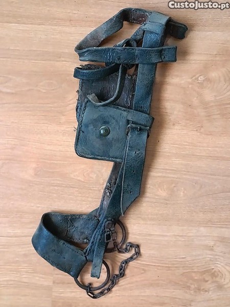 Cabeção, cabresto ou cabeçada de equitação, em couro genuíno do século XX, para cavalo ou pónei, cor castanha, usado em bom estado, apresentando oxidação e pátina do tempo. Peça decorativa ou simplesmente para uso nos fins ao qual foi pensado, necessitando nesse caso amaciar o couro antes de o utilizar.