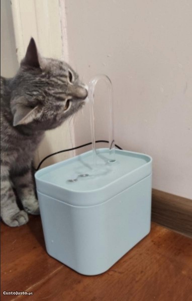 A Fonte de Agua para Gatos permite que o seu gato tenha à disposição continuamente água fresca e limpa, já que a água está em constante mudança e é oxigenada ao segundo. A água fresca e limpa produzida na Fonte , melhora a saúde geral e a saúde dos rins, evitando cálculos na urina, um problema muito frequente nos gatos.