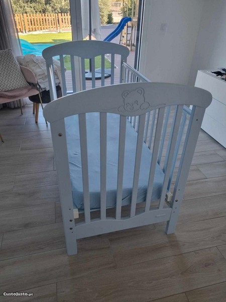 Para venda berço azul, com colchão, protetor colchão, lençol azul, e dois protetores laterais, que envolvem na totalidade o berço.