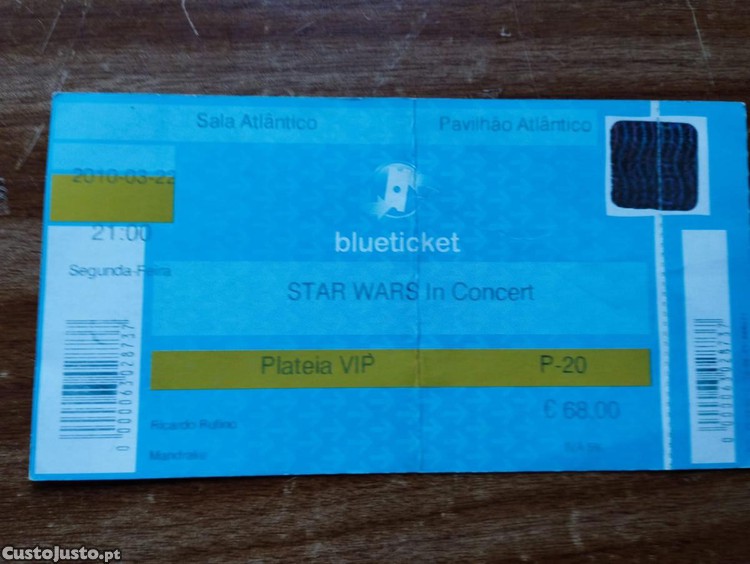 Preço: 7 €Vintage Bilhete Star Wars In Concert - 22-03-2010 - Pavilhão Atlântico