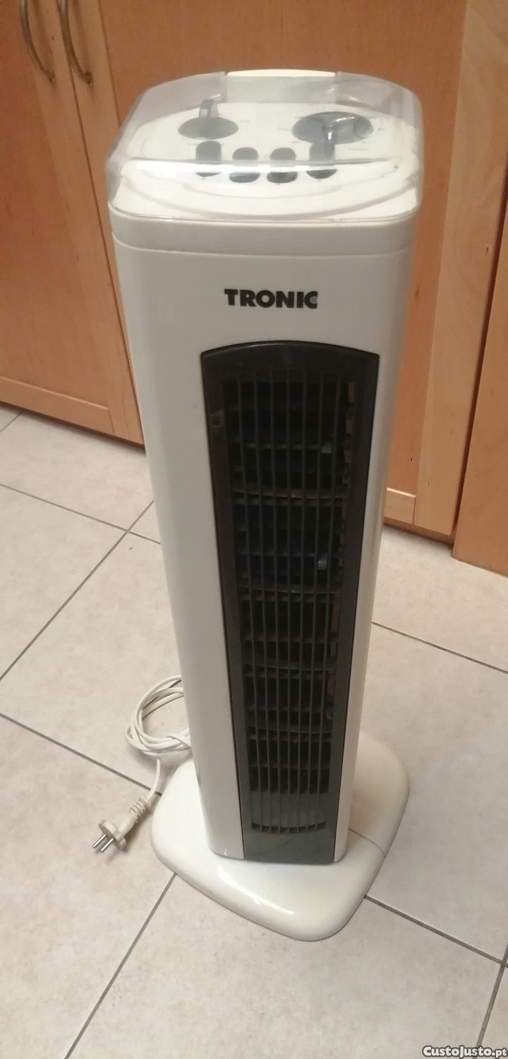 Ventilador de torre rotativo. Em perfeito estado. Funciona perfeitamente e é muito silencioso. 3 velocidades de ventilador, A função de rotação pode ser ativada a 120 graus, com opção de temporizador para até 2 horas de utilização antes de desligar. Horímetro de 75 cm, base 24 x 24 cm.