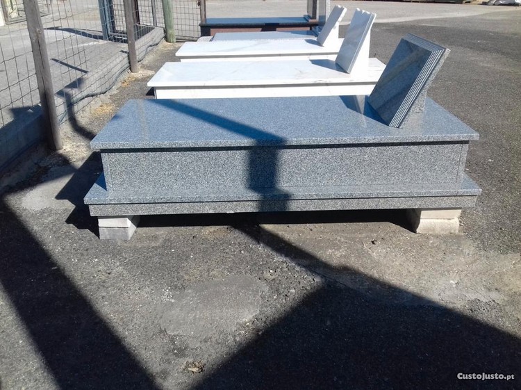 O preço indicado é de uma campa em Granito cinza Santa Eulália , com Livro Grosso , conforme a foto, sem montagem incluída , sem jarra , sem letras , sem fotos .