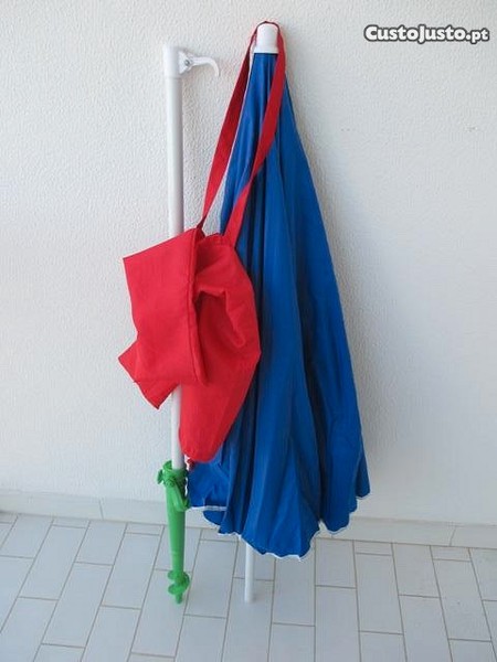 Chapéu guarda-sol azul, para jardim ou praia. Novo, com saco de transporte.