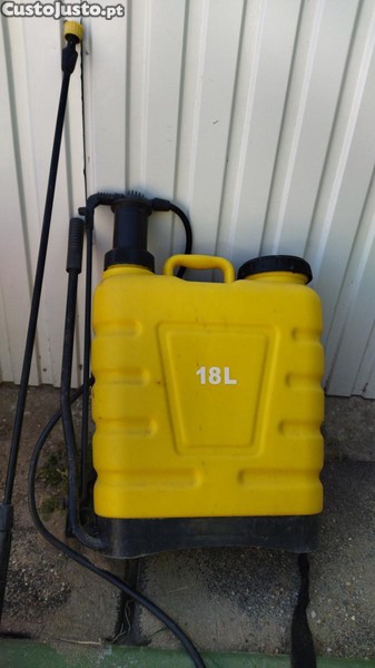 Um pulverizador manual de 18 litros usado mas a funcionar sem qualquer anomalia.