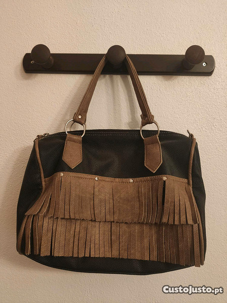 Mala em tom preto e camel com franjas. Muito pouco usada.