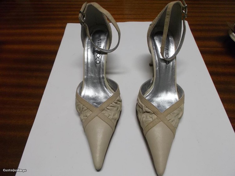 Sandálias, marca Andreia Tokio, n. 34 em tom creme.