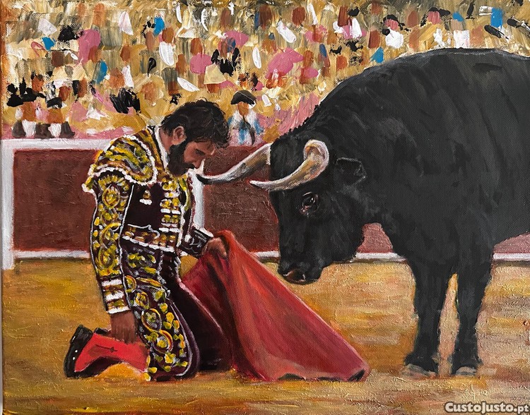 O toureiro Álvaro Munera fez o impensável. Às vezes, basta um momento de conexão para ver o mundo de outra maneira Pintura em técnica mista com dimensões de tela 50x40 cm. (de uma foto na internet)Enviarei por correio registado ou entrega em mão a Santarém custo de envio incluído