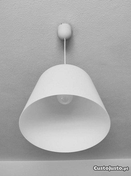 Candeeiro suspenso de teto, em plástico opaco branco, usado em excelentes condições, eletrificação em perfeito estado de funcionamento. Lâmpada não incluída no preço.